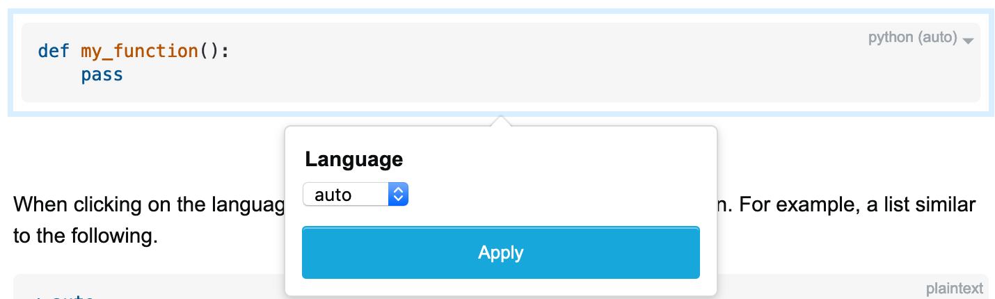 When clicking on the language, a dialogue would appear with possible selection. For example, a list similar to the following.