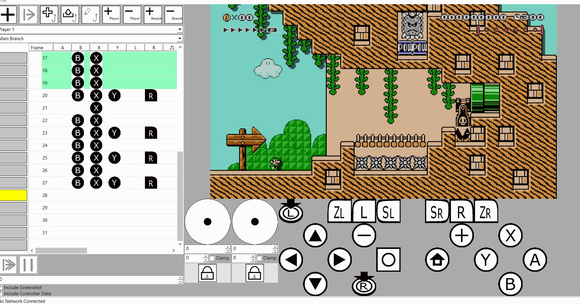 Next, use a feature called auto-frame. This feature allows you to use the first controller connected to your system to control the current player. The inputs on your controller will be captured and saved within the TAS. You may uncheck Include Controller Data in the bottom left if you have weak internet and you would like to increment faster. The delay between frames can be set in the bottom left.