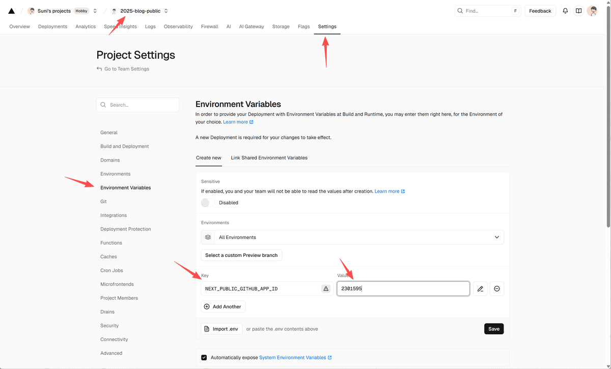 设置完成后,需要手动再部署一次,让环境变量生效。
