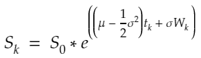 diffusion = {str(scen): sigma * W[str(scen)] for scen in range(1, scen_size + 1)}The GBM model is the following: