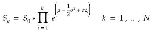 S = np.array([So * np.exp(drift + diffusion[str(scen)]) for scen in range(1, scen_size + 1)])