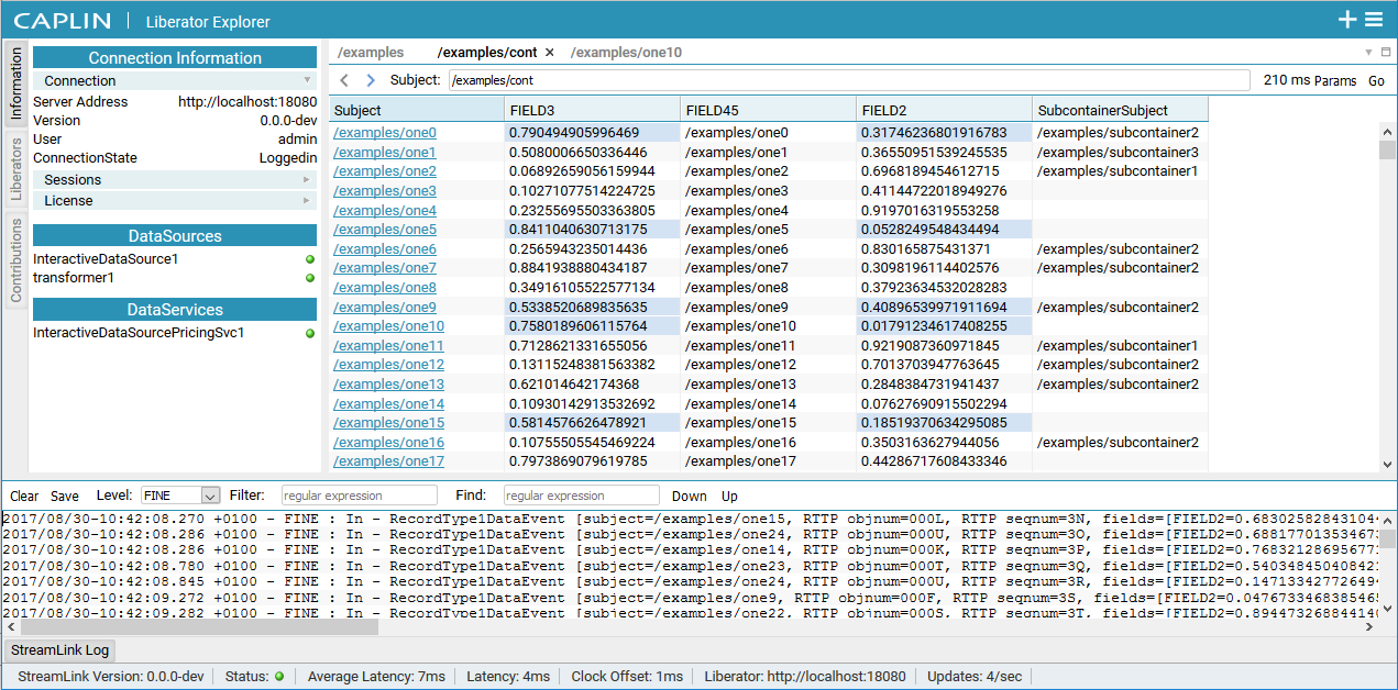 Screenshot of Caplin Liberator Explorer using FlexLayout