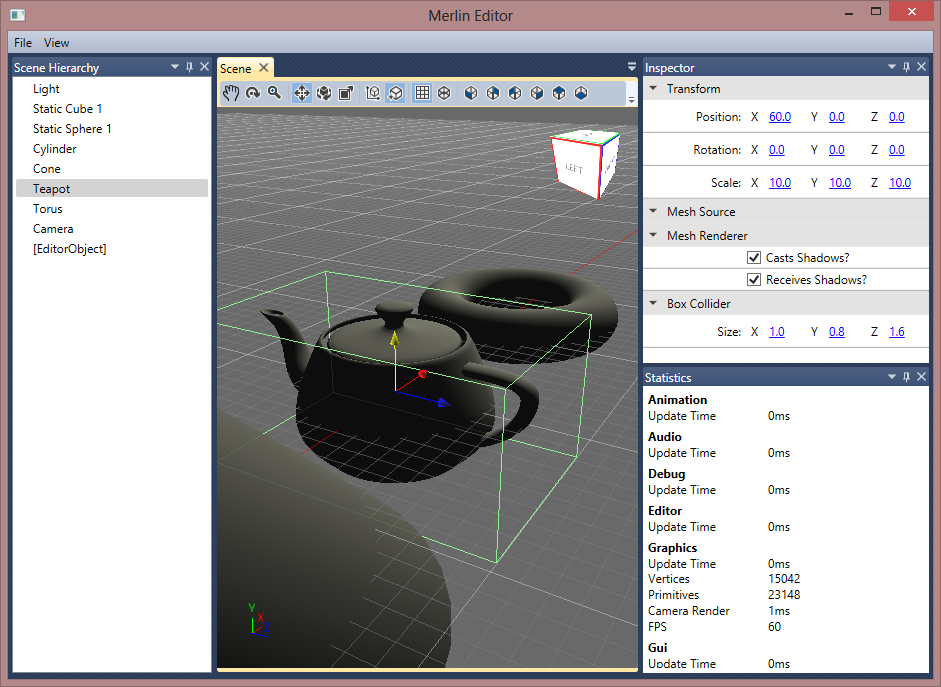 Similar in purpose to the property grid, but the Inspector module takes a more flexible approach. Instead of the strict "two-column / property per row" layout used in the standard PropertyGrid, the Inspector module allows each editor to customise its own view.