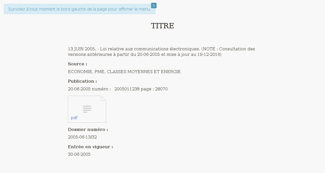 Better Lex bookmarklet is a tool for improving readability of the online Belgian consolidated legislation. It requires a modern Web browser, such as Firefox.