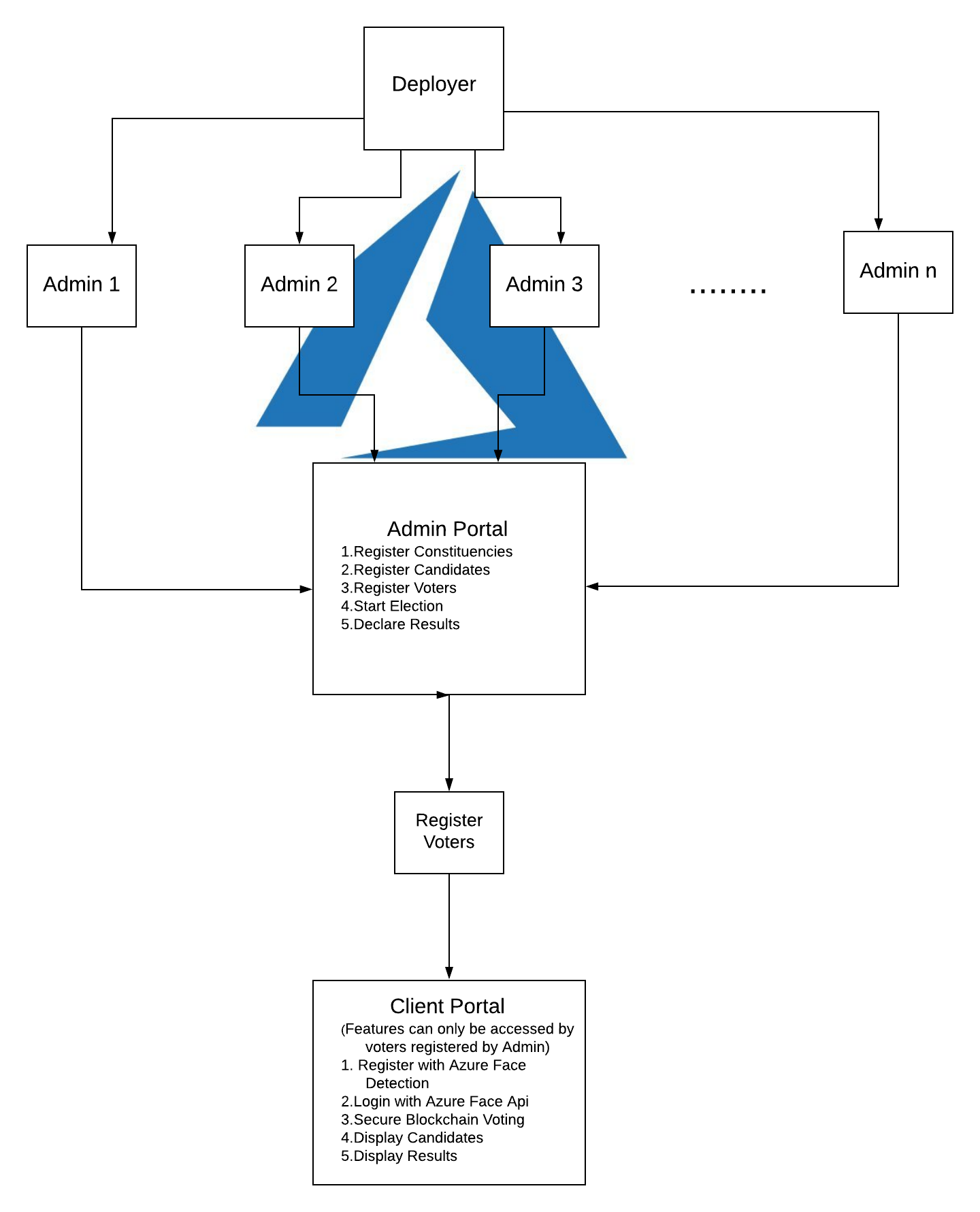 The user will have to simply register as a voter and/or candidate with their credentials(voterID details and a face-detection system) on a user-friendly registration page. After the details have been verified, the voters will be initialized as active voters. On the day of election the voter can login on the DApp with their credentials after which they can give their vote on the displayed ballot(within the stipulated election time).