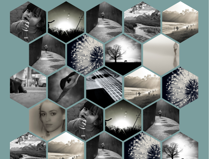 - The number of hexagons per row is adaptive and changes from 5 to 2 on media query break points